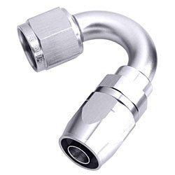 Aeroflow's 500 series cutter fittings are a braised full flow fitting. The billet cutter end separates the wire braid for maximum hose retention, sealing the hose for a second time, which provides a greater sealing area for strength and easier assembly. All angles are mandrel bent, eliminating sharp changes in direction for optimum flow. Aeroflow's 500 Series fittings have a swivel head to allow for easy adjustment making them an excellent choice for the automotive enthusiast for use in fuel systems, cooling systems, vacuum applications and oil systems. Compatible hose: 100 Series S/S braid, 450 Series Lightweight Nylon braid.